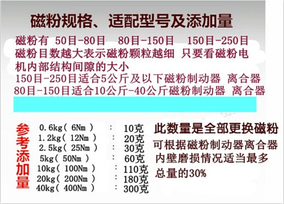 (8)下面是各型號磁粉離合器和磁粉制動(dòng)器填充磁粉請參照下表: