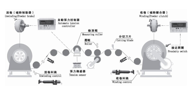 實(shí)時(shí)檢測張力并且控制磁粉離合器的力矩大小。