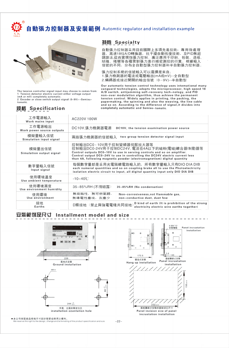 東莞天機(jī)傳動(dòng)(臺(tái)灣天機(jī)牌)生產(chǎn)廠家銷(xiāo)售的半自動(dòng)張力控制器又稱(chēng)卷徑型半自動(dòng)張力控制器或者演算型半自動(dòng)張力控制器。產(chǎn)品采用進(jìn)口原材料,臺(tái)灣生產(chǎn)加工技術(shù),并且通過(guò)ISO9001質(zhì)量體系認(rèn)證和CE認(rèn)證,質(zhì)量放心可靠。